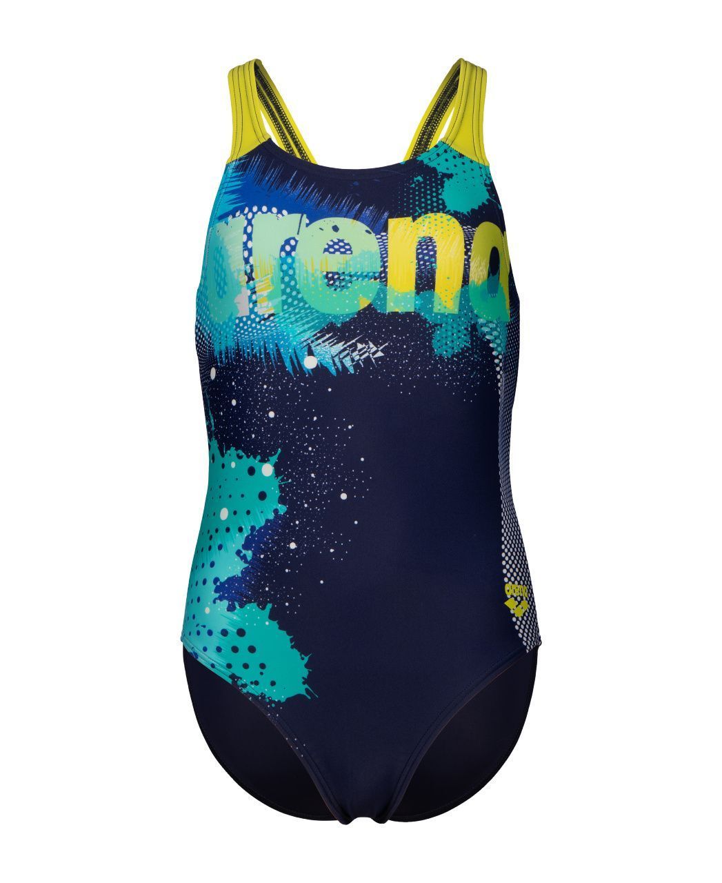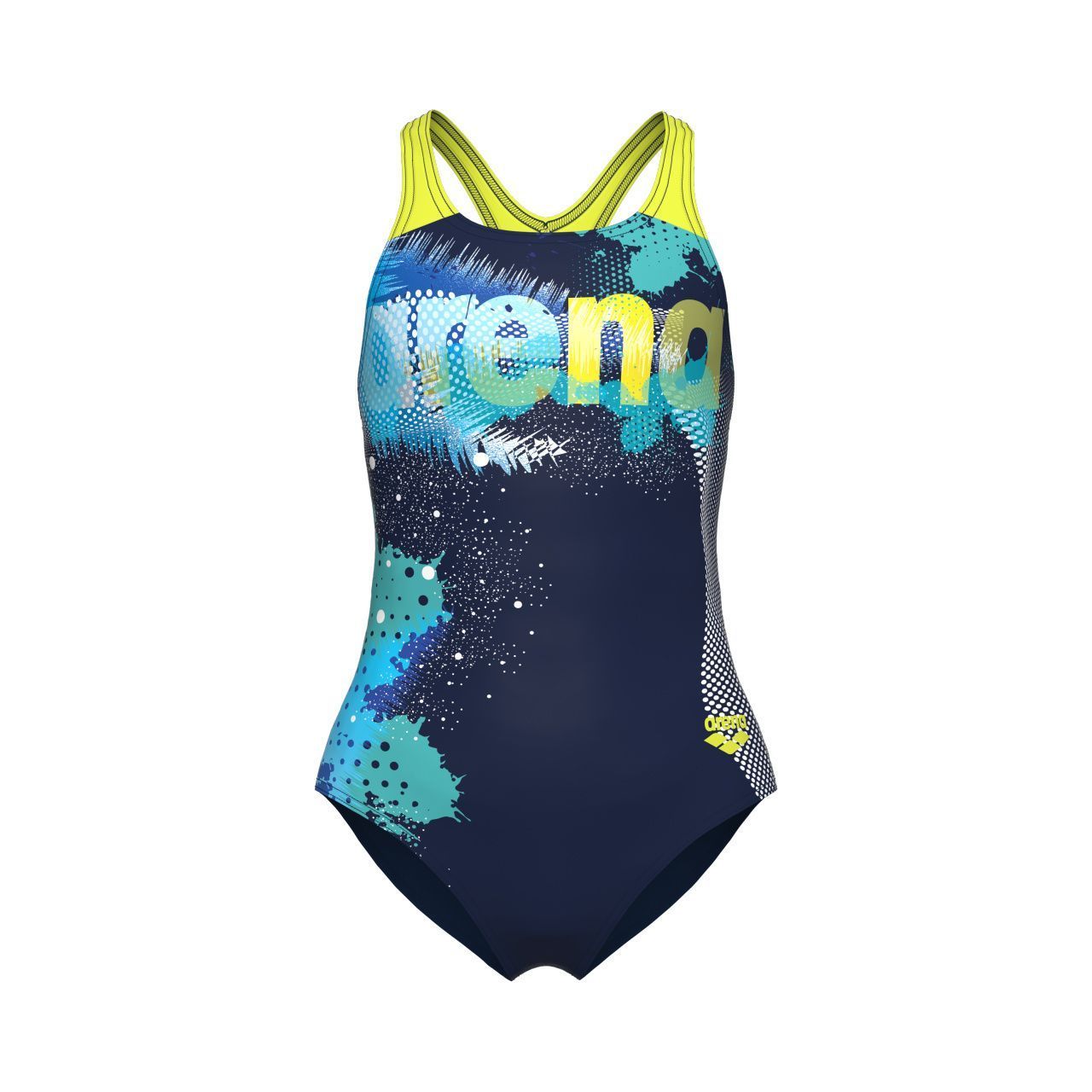 Arena Mädchen-Badeanzug Feel Graphic V Back UK 24 Blau