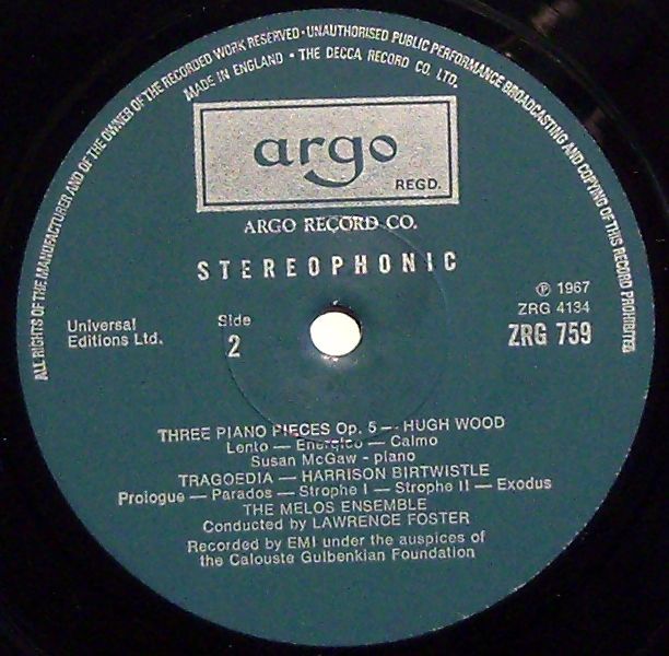 Argo ZRG 759 - Harrison Birtwistle, Gordon Crosse, Hugh Wood - Tragoedia / Conce