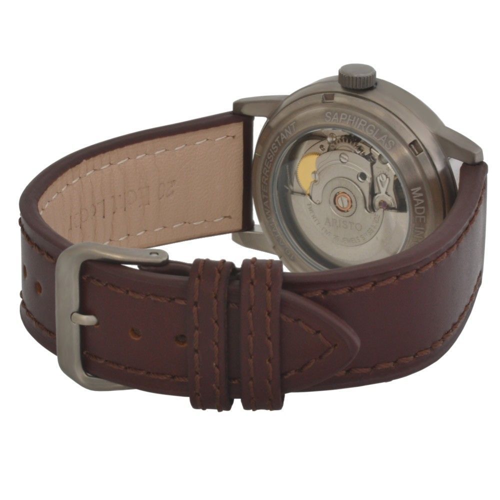 Aristo Unisex Automatik Beobachter Fliegeruhr 5H84 Titanium 10 ATM Leder SW200
