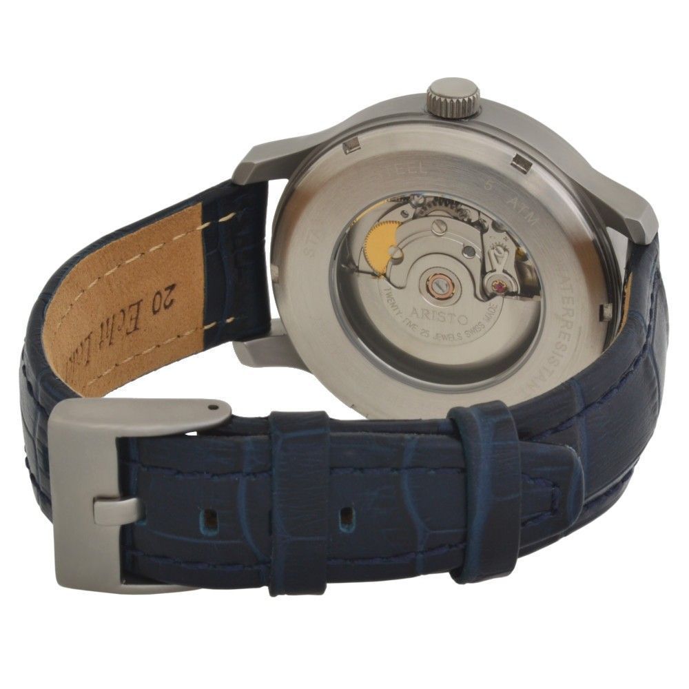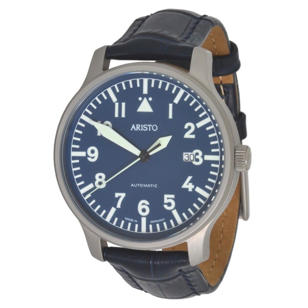 ARISTO Unisex Automatikuhr 3H157LB blaues Ziffernblatt Edelstahl Leder 5ATM ETA2824