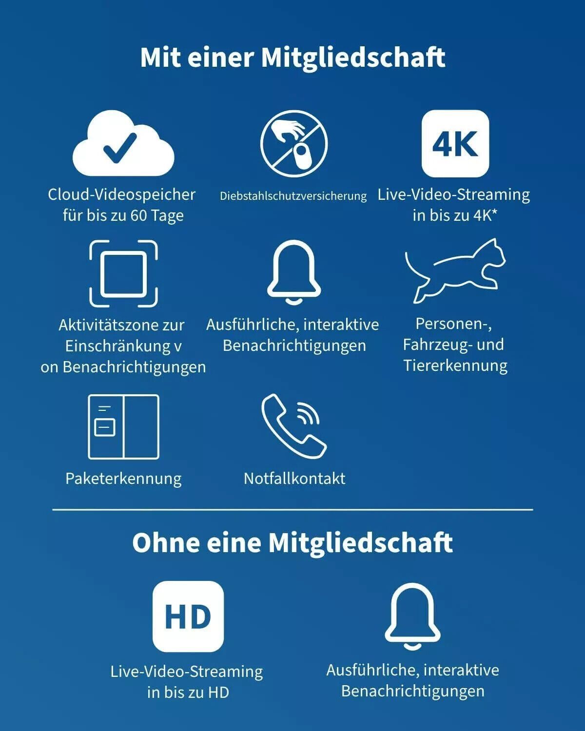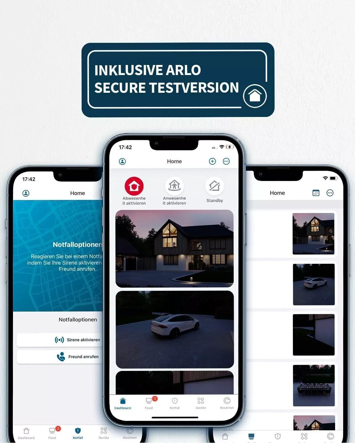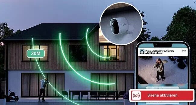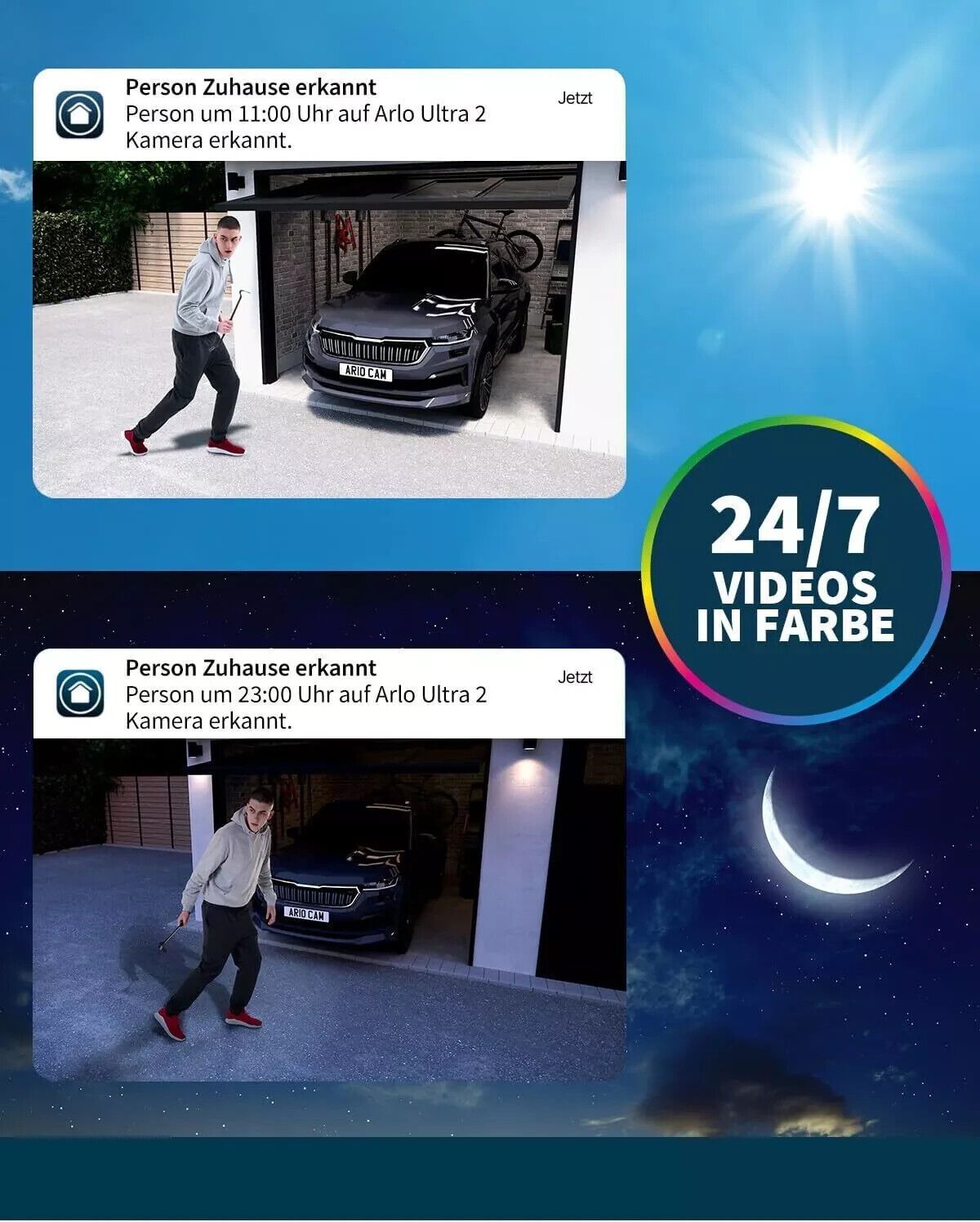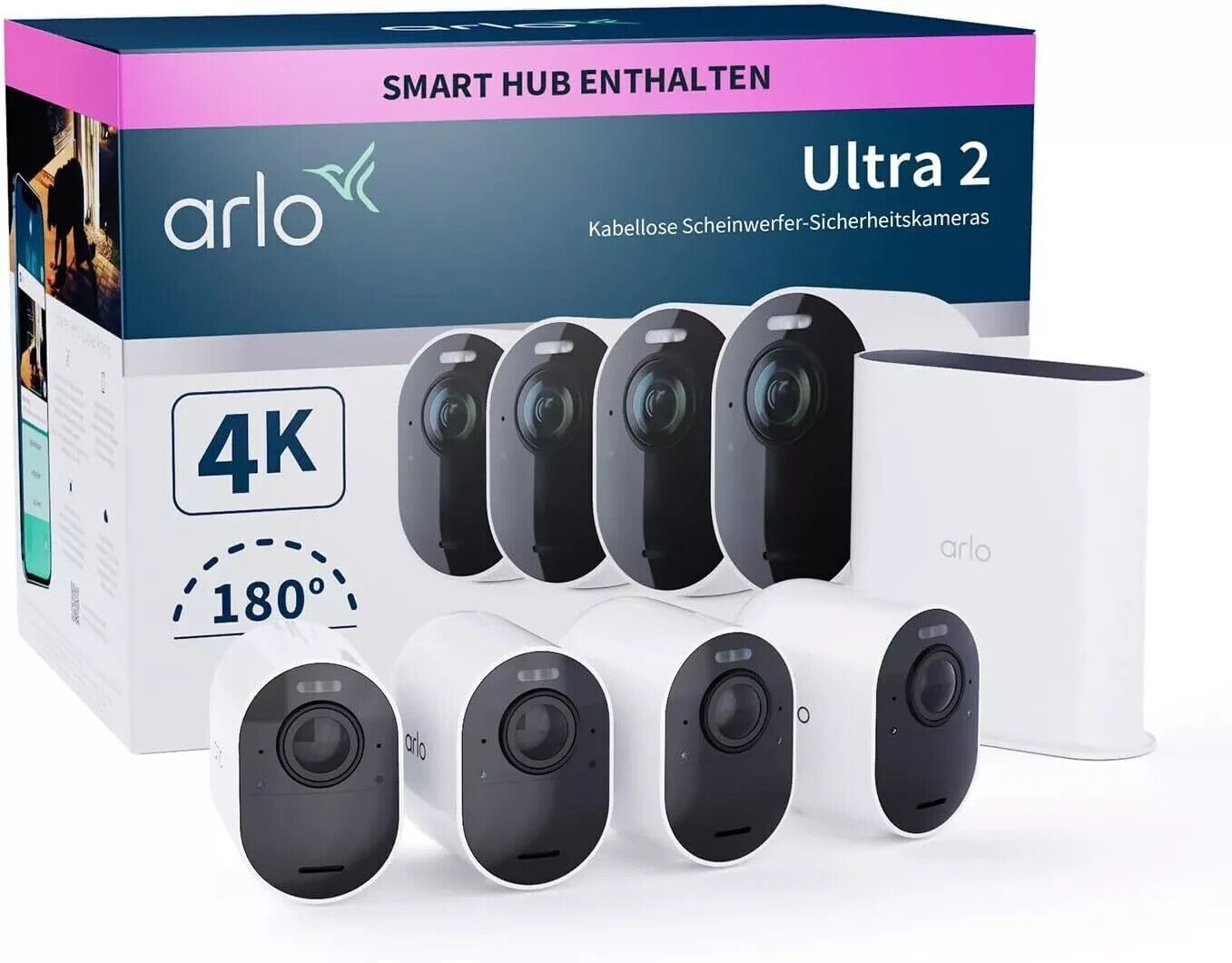 ARLO Ultra 2 Überwachungskamera 4K 4er Set Farbnachtsicht kabellos inkl. Secure Bildqualität in 4K HDR Nachtsicht in Farbe elgantes Design Echtzeit-Benachrichtigungen integrierter Scheinwerfer (Spotlight) Smarte Alarmsirene Smarthome Integration kompatibel mit Alexa, Apple Homekit, Google Direkte Ei