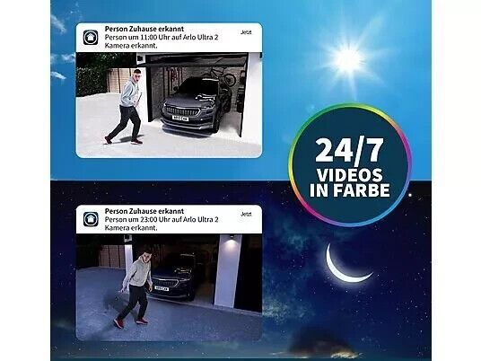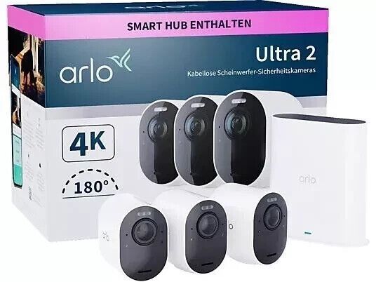 Arlo Ultra 2 - Überwachungskamera-Set (3 Kameras) Technische Daten: Modell: Arlo Ultra 2 Set: 3 Überwachungskameras Videoauflösung: 4K Ultra HD Nachtsicht: Farbnachtsicht WLAN-Unterstützung: 2,4 GHz & 5 GHz Audio: Zwei-Wege-Audio Wetterfest: Ja Betriebszeit: Wiederaufladbare Batterien Produktbeschre