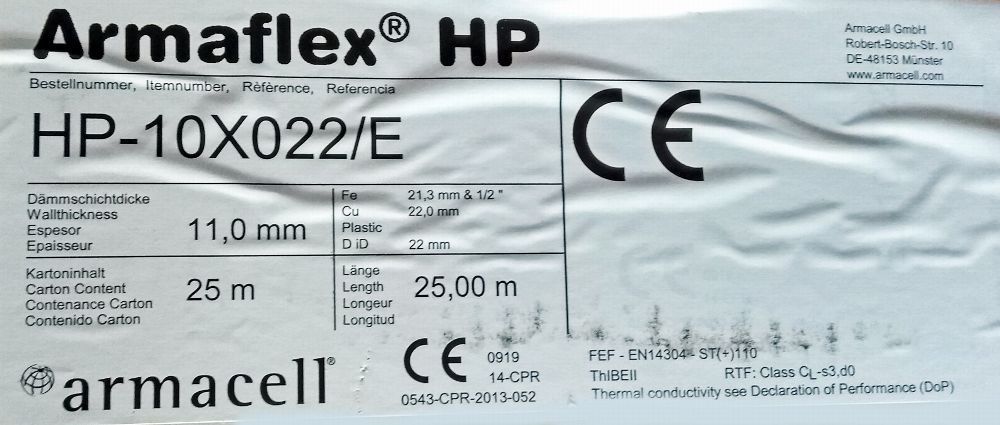 Armacell Armaflex HP Rohrisolierung Isolierschlauch endlos (11mm x 22mm x 25m) 04454