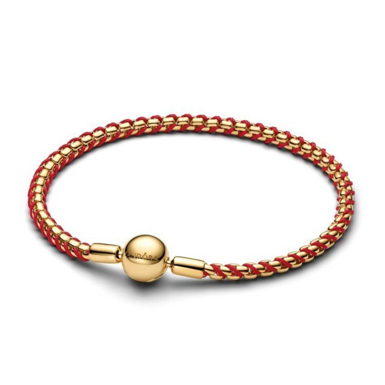 Pandora Armband 18cm - Vergoldet - Rote Kordelband