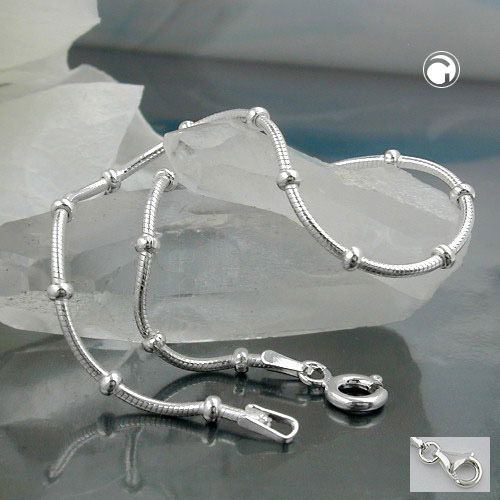 Armband 1mm runde Schlangenkette mit Kugeln symmetrisch Silber 925