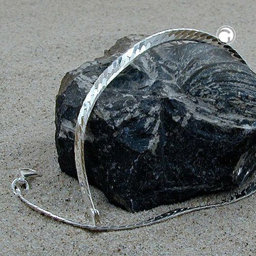 Armband 3mm Panzerkette flach gedrückt glänzend diamantiert Silber 925