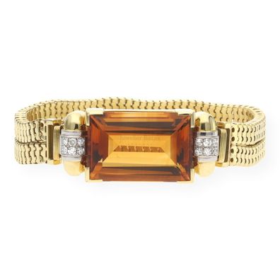 • Vintage Armband aus 750 Gold mit Citrin und Diamanten, getragen