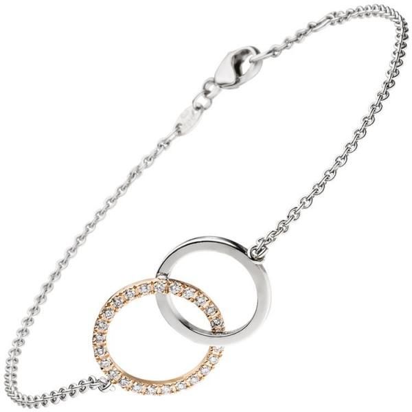 JOBO Armband 585 Weißgold Rotgold bicolor 25 Diamanten Brillanten 19 cm