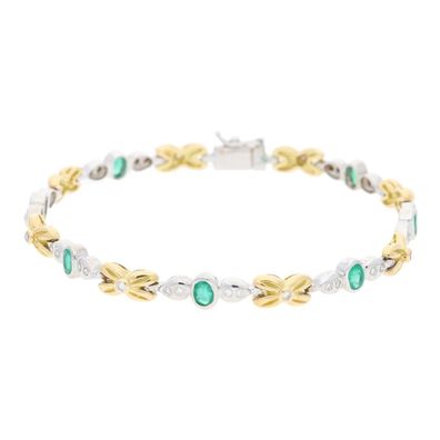 • Armband Gold und Weißgold 750 Smaragd und Diamanten Second Hand getragen