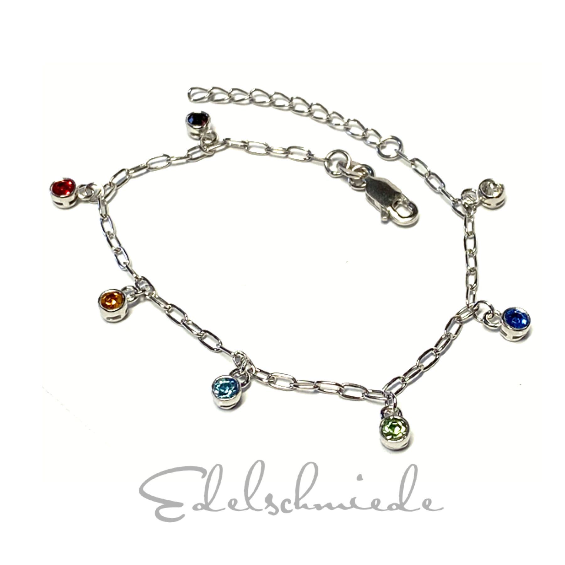 Armband 925/- Silber rhodiniert Zirkonia multicolor beweglich Farbverlauf Regenbogen