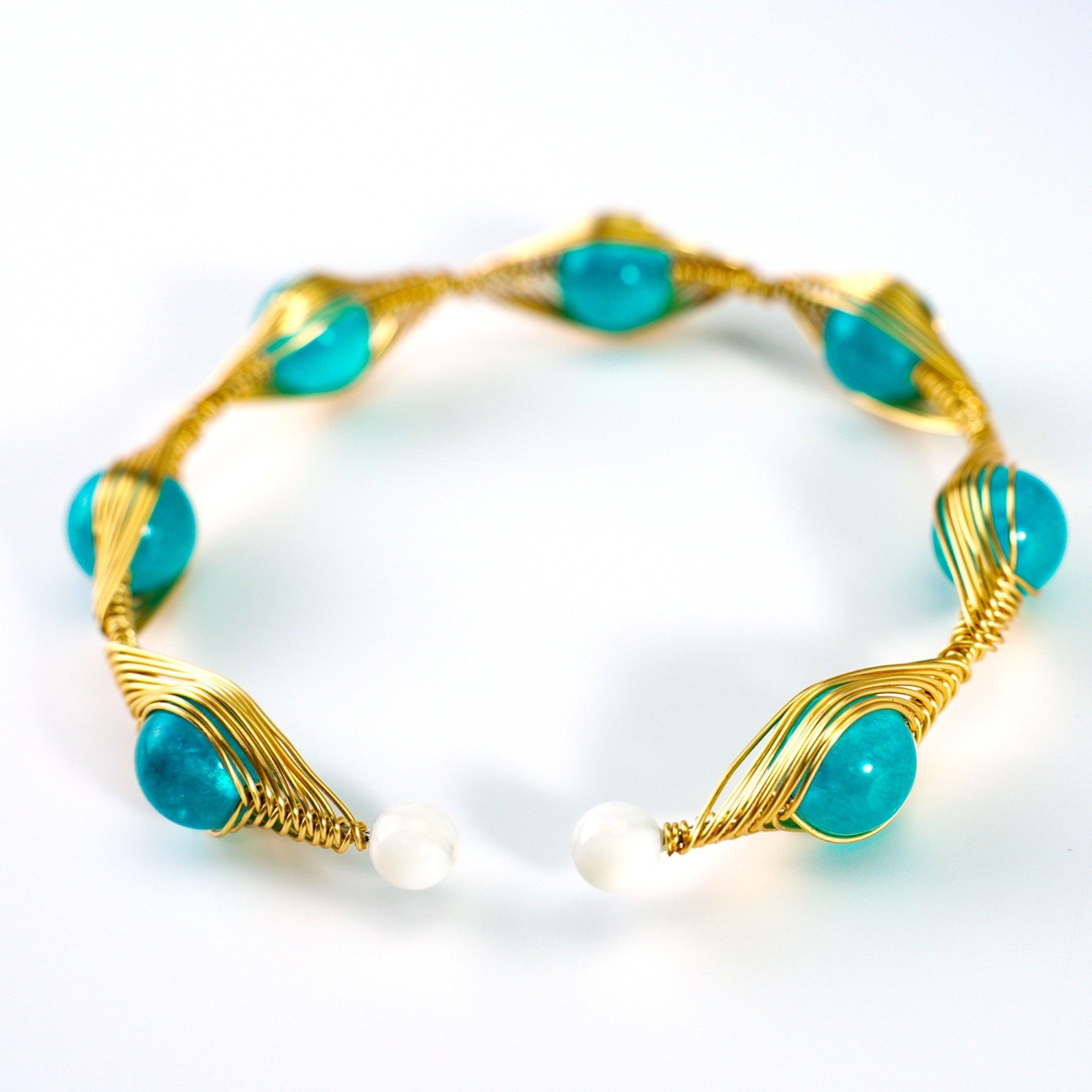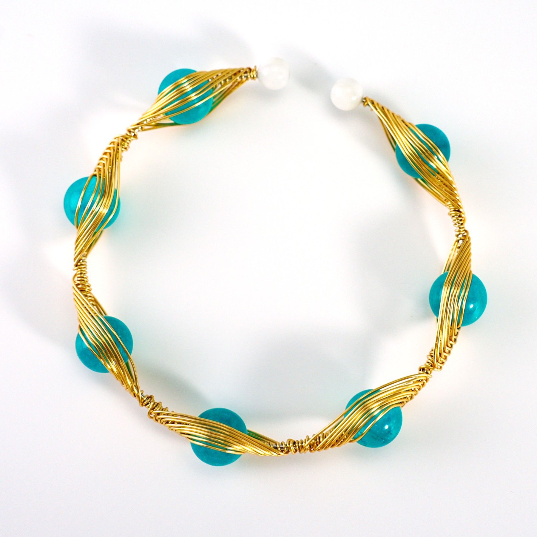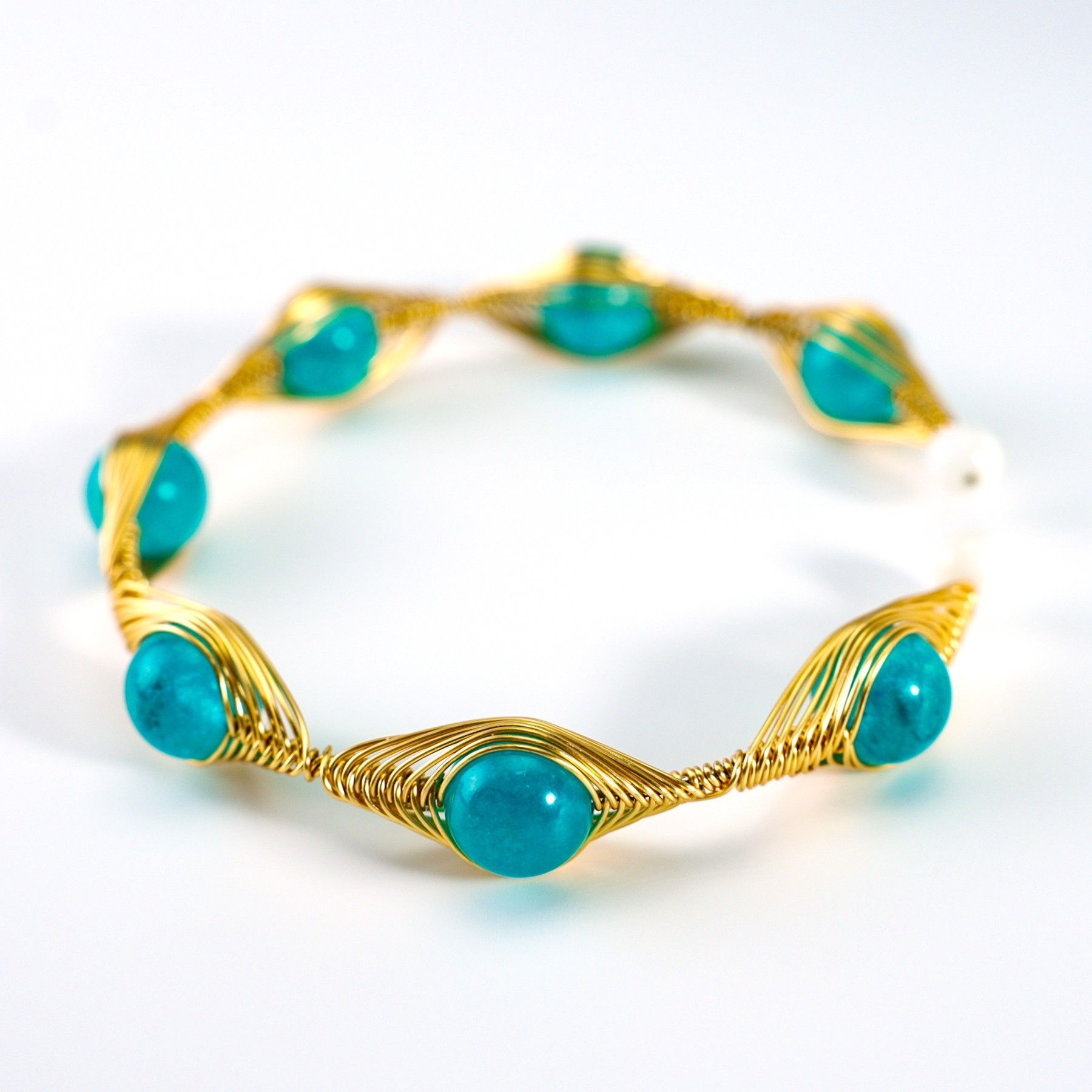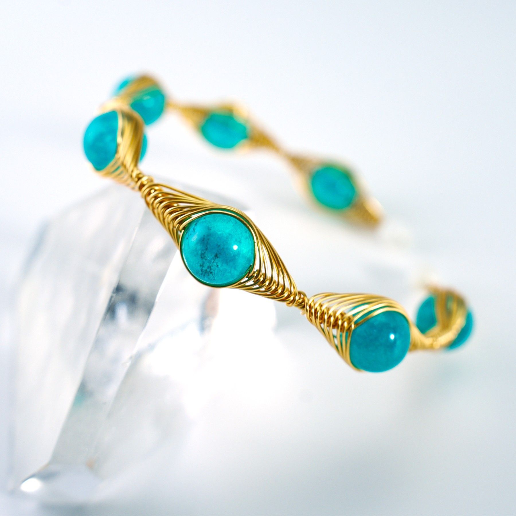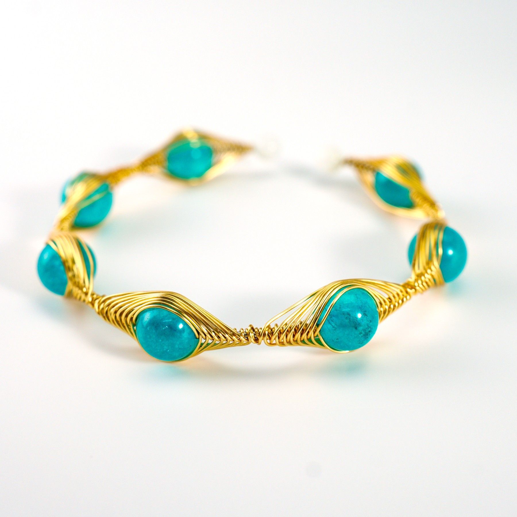 Handgemachtes Damen-Armband aus Amazonit & 14 K Golddraht – Naturstein-Schmuck für Balance, perfektes Geschenk für sie.