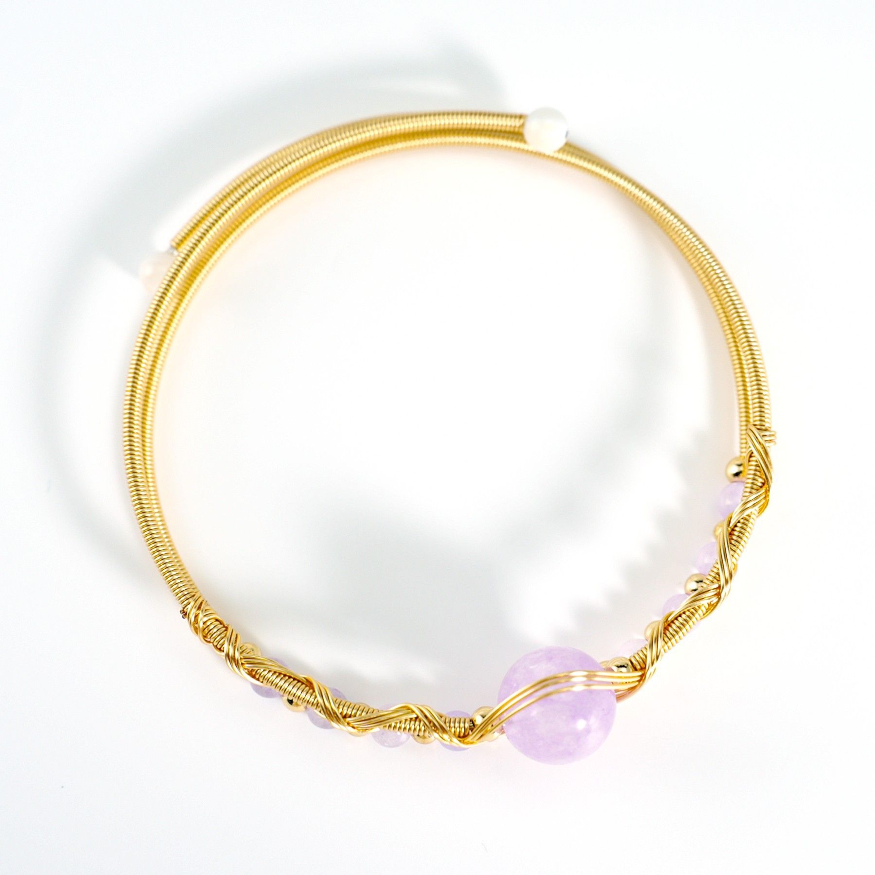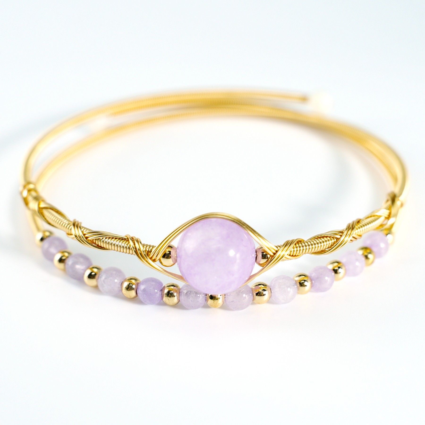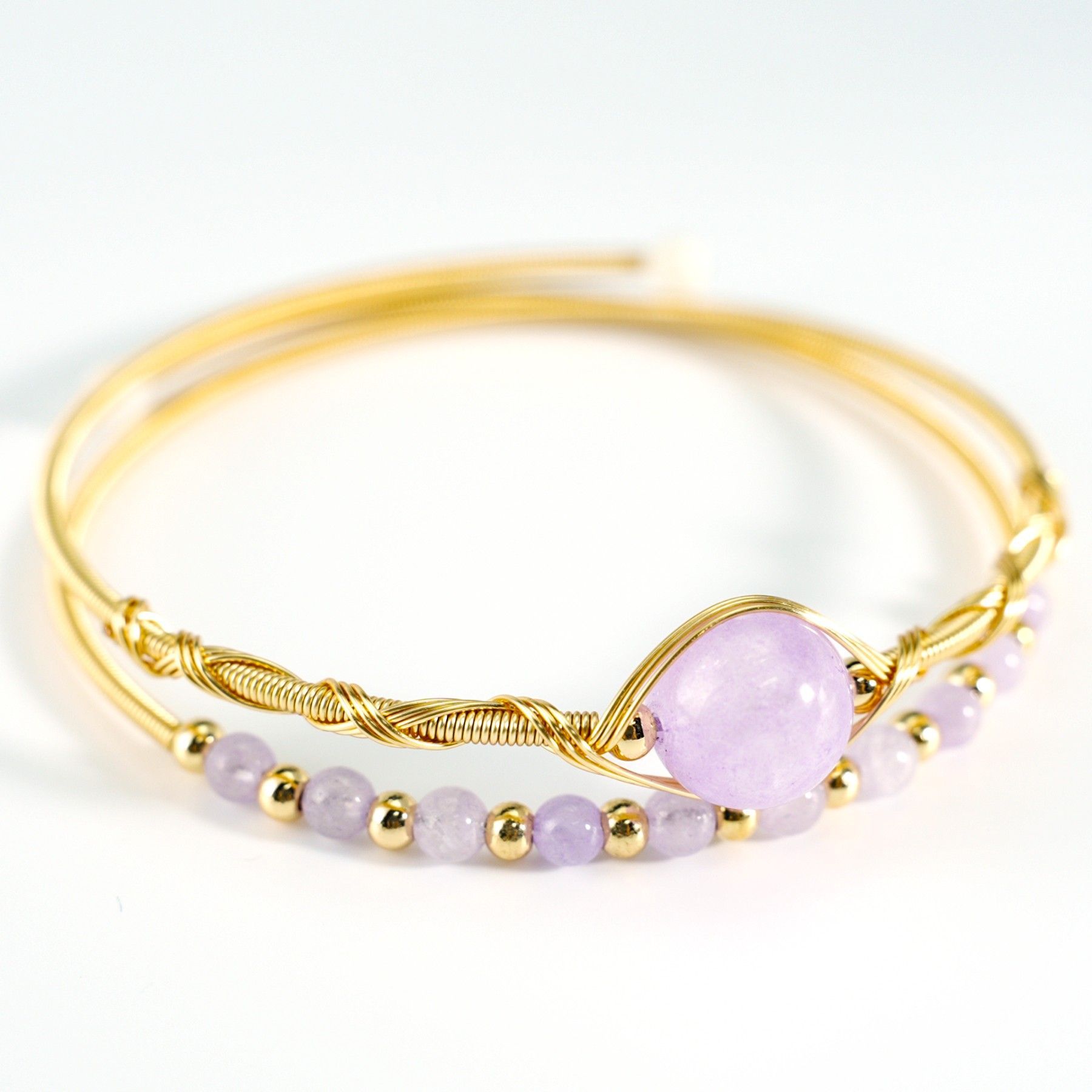 Handgemachtes Damen-Armband aus Lavendel-Amethyst & 14 K Vergoldung – natürlicher Edelstein-Schmuck, elegantes Geschenk für sie.