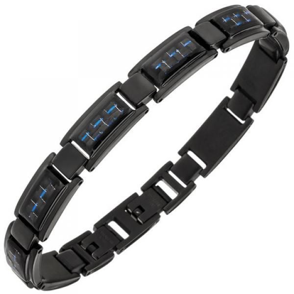 JOBO Armband Edelstahl schwarz beschichtet mit Carbon blau 21 cm