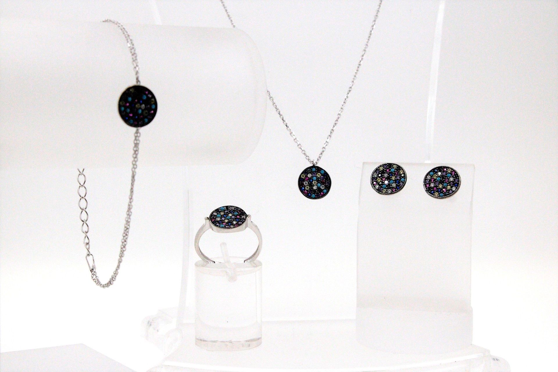 Armband, Halskette, Ohrstecker und Ring aus 925er Silber