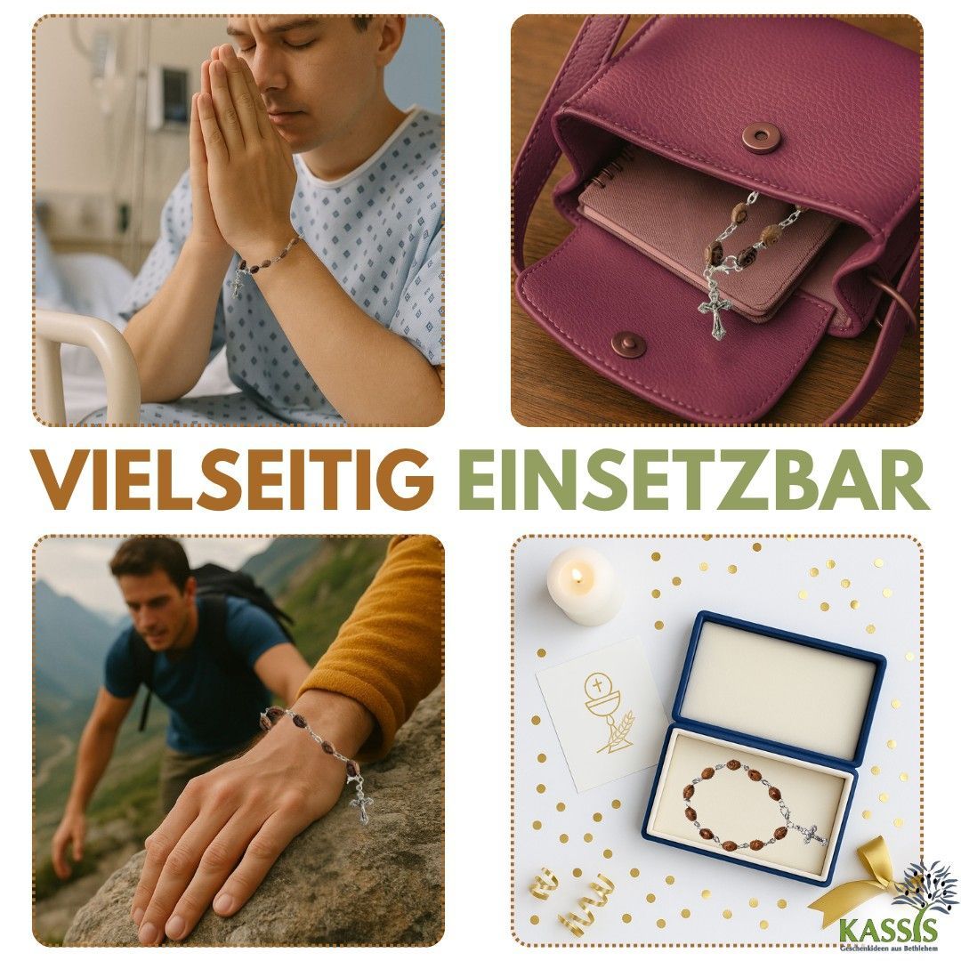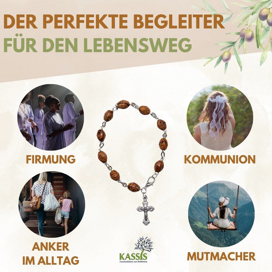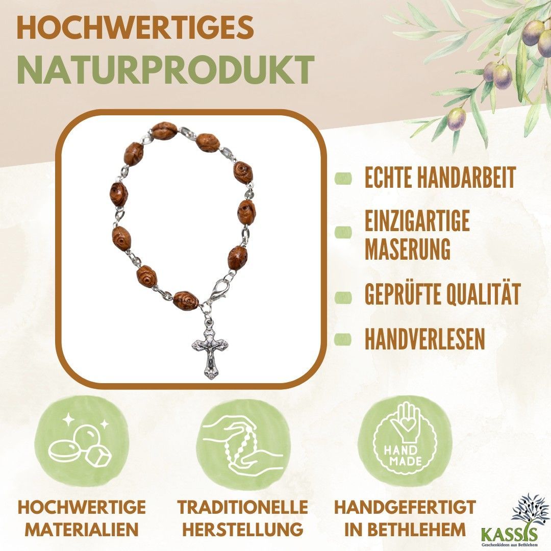 Armband mit dekorierten Olivenholz-Perlen - Handgefertigt in Bethlehem Talisman