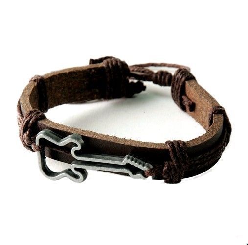 Armband mit Gitarre Hanf/ Leder verstellbar Steampunk Breite 17mm 1Stück