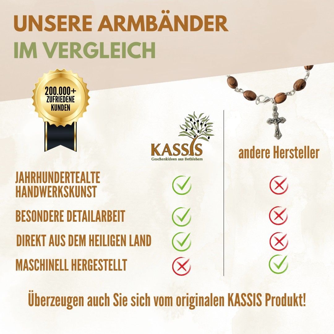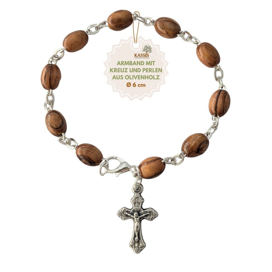 Armband mit ovalen Olivenholz-Perlen - Handgefertigt in Bethlehem Talisman