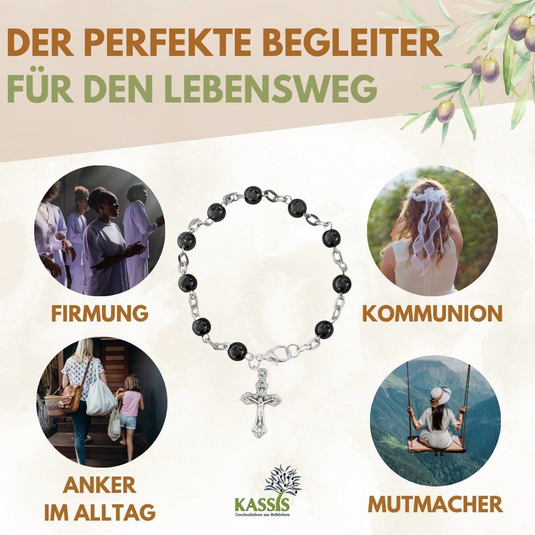 Armband mit runden Hämatit-Perlen - Handgefertigt in Bethlehem Talisman Glücksbringer