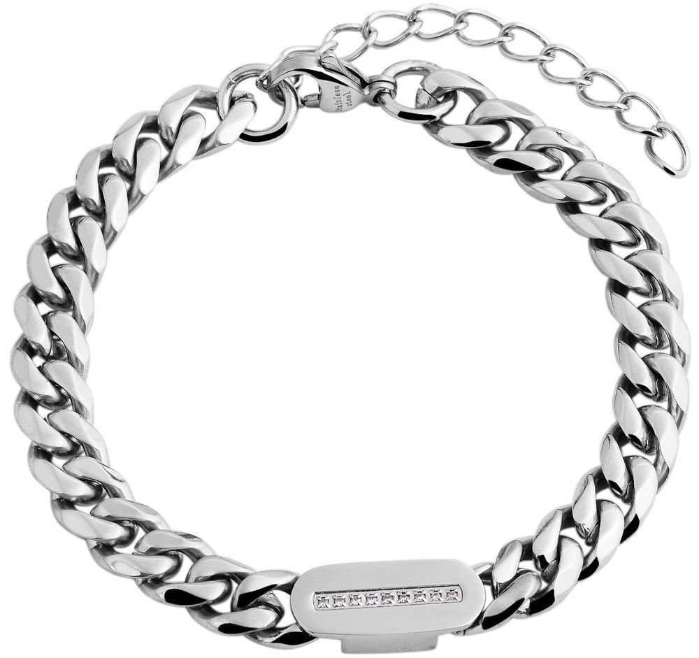 Armband Panzerkette Edelstahl silberfarbig 17+ 5 cm x 8 mm Steinbesatz Karabinerve