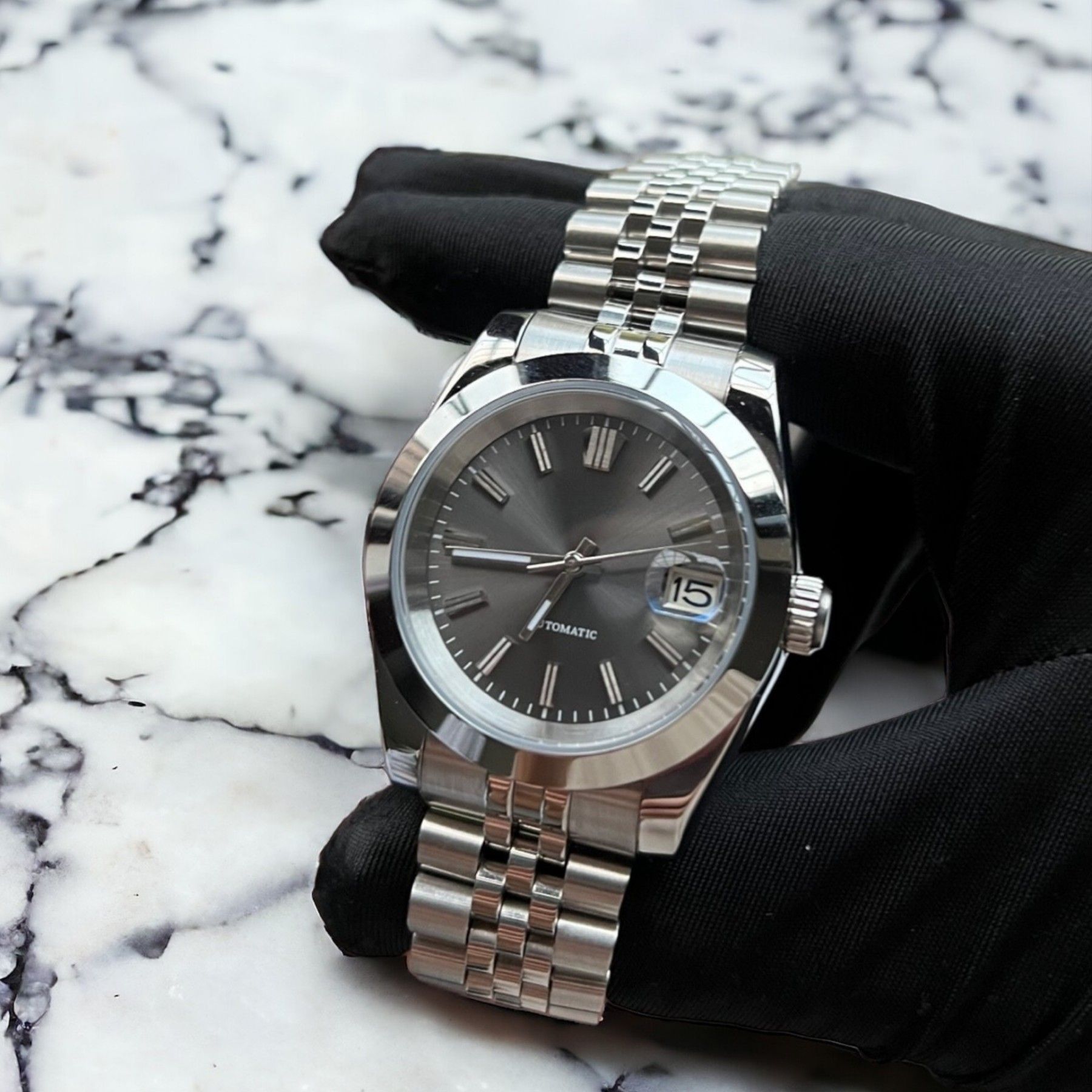 Armbanduhr Datejust Grau Stahl Jubileearmband Automatik Luxusuhr 39mm