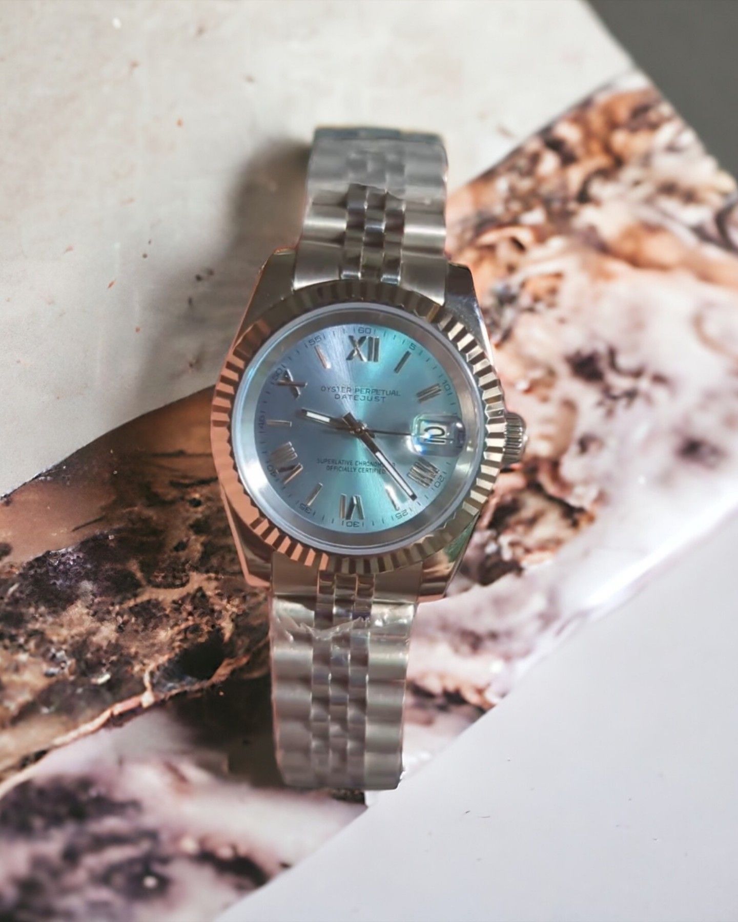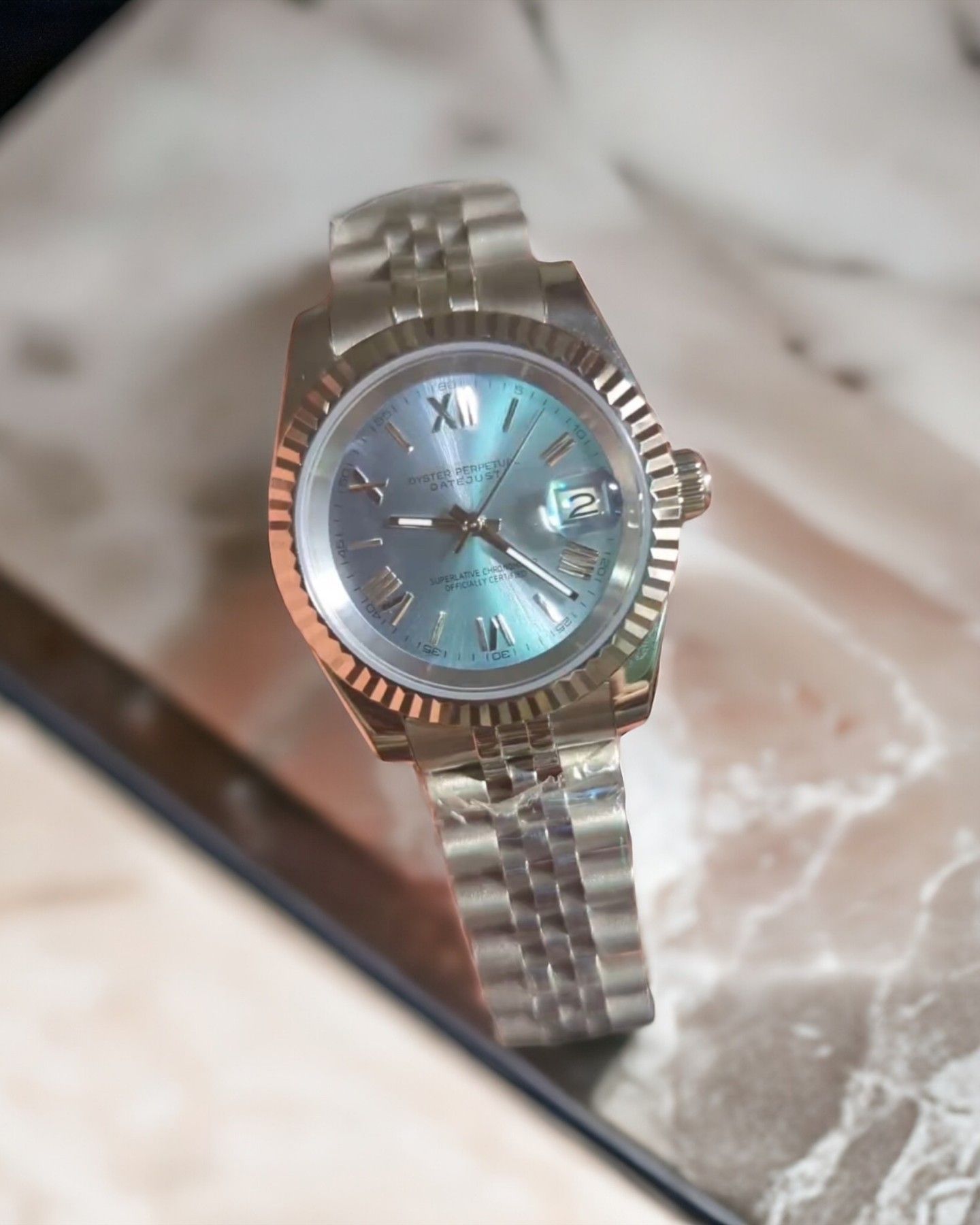 Armbanduhr Datejust Hellblau Diamant Zifferblatt Stahl Jubilee Automatik Luxusuhr