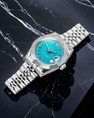 Armbanduhr Datejust Roman Dial Türkis Stahl Jubilee Automatik Luxusuhr 39mm
