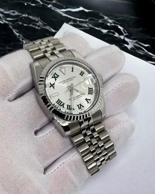 Armbanduhr Datejust Weiß Stick Dial Stahl Jubilee Automatik Luxusuhr 36mm