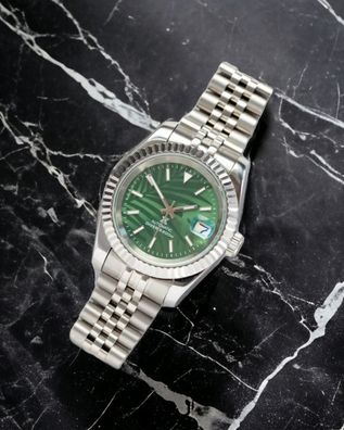Armbanduhr Datejust Palm Dial Grün Stahl Jubilee Automatik Luxusuhr 39mm