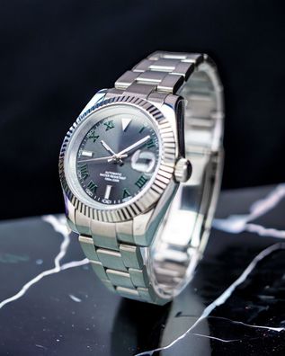 Armbanduhr Datejust Wimbledon Dial Stahl Fluted Bezel Oyster Automatik Luxusuhr 39mm