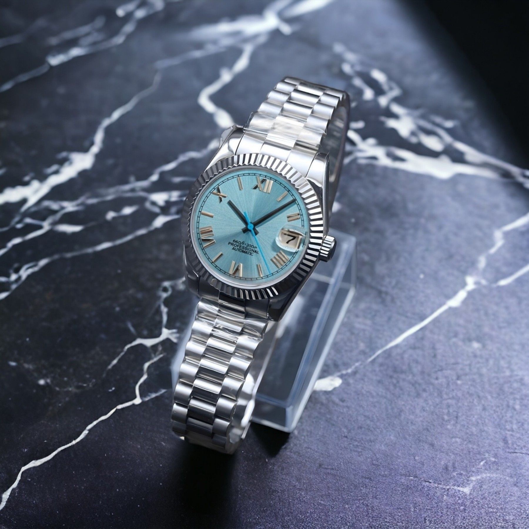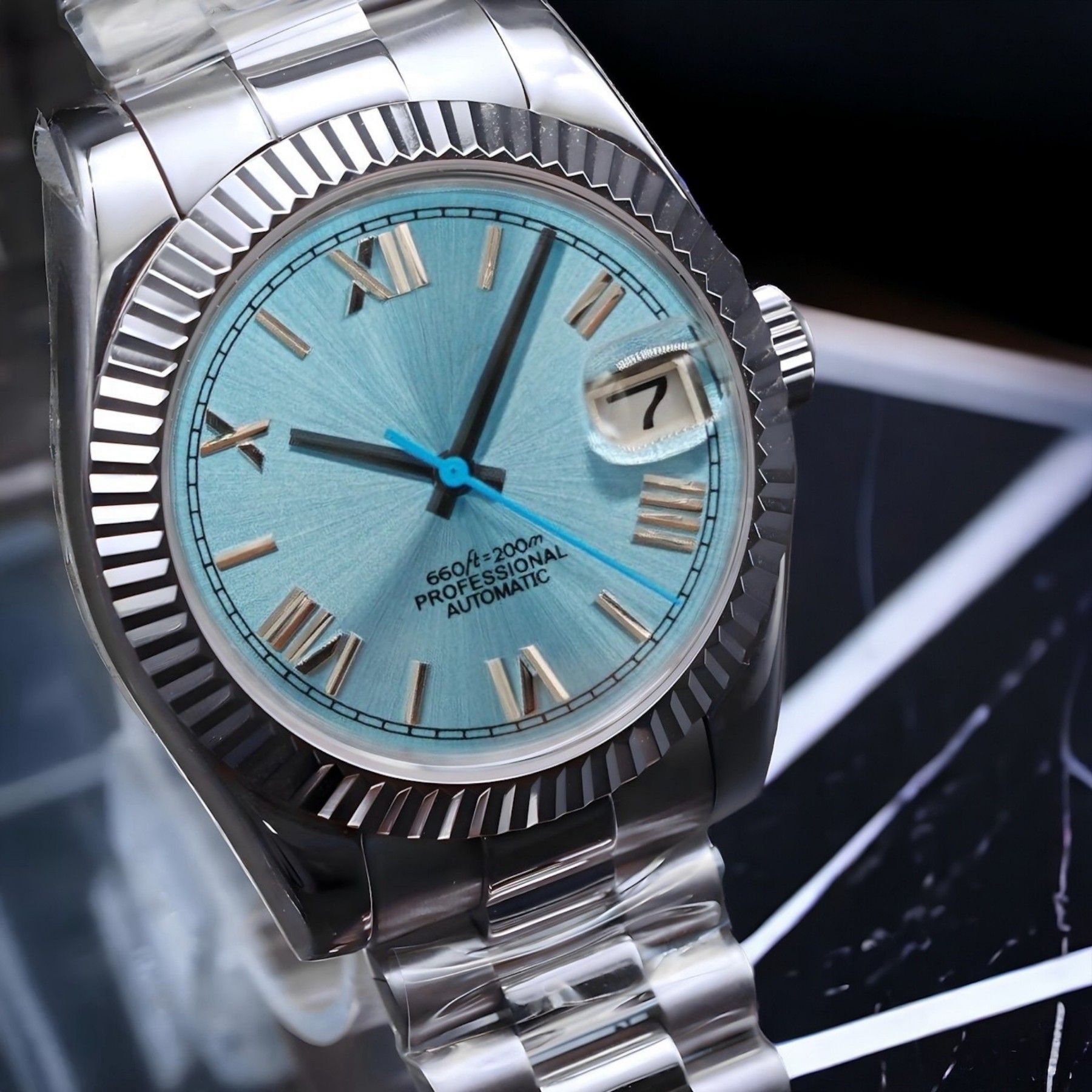 Armbanduhr Datejust Römisches Zifferblatt Türkis Stahl Automatik Luxusuhr 39mm