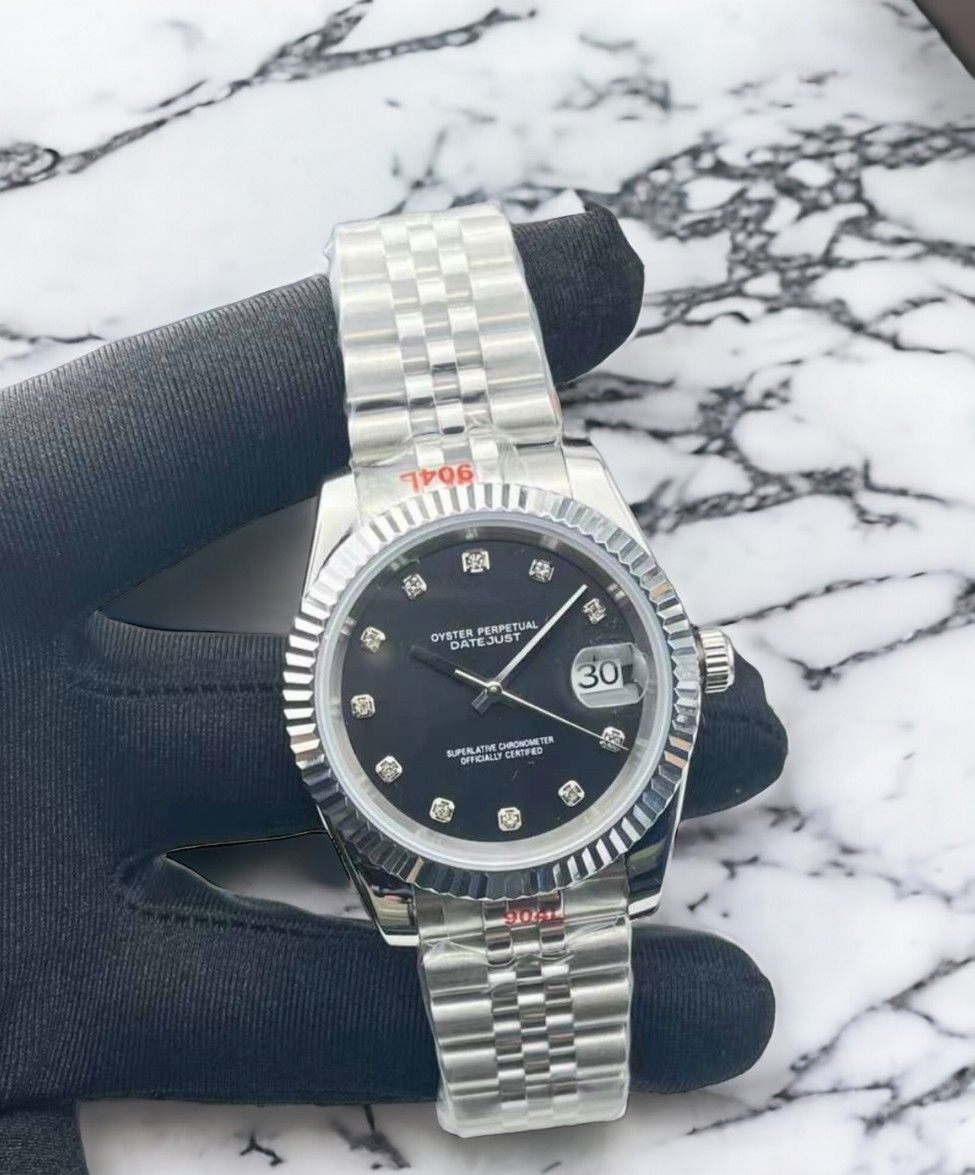 Armbanduhr Datejust Diamant Zifferblatt Schwarz Stahl Jubilee Automatik Luxusuhr 39mm