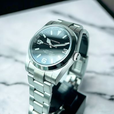 Armbanduhr Explorer Schwarz Stahl Oyster Perpetual NH35 Automatikuhr Herren