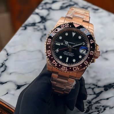 Armbanduhr GMT-Master Rootbeer Schwarz Rosegold Oyster NH34 Automatikuhr Herren