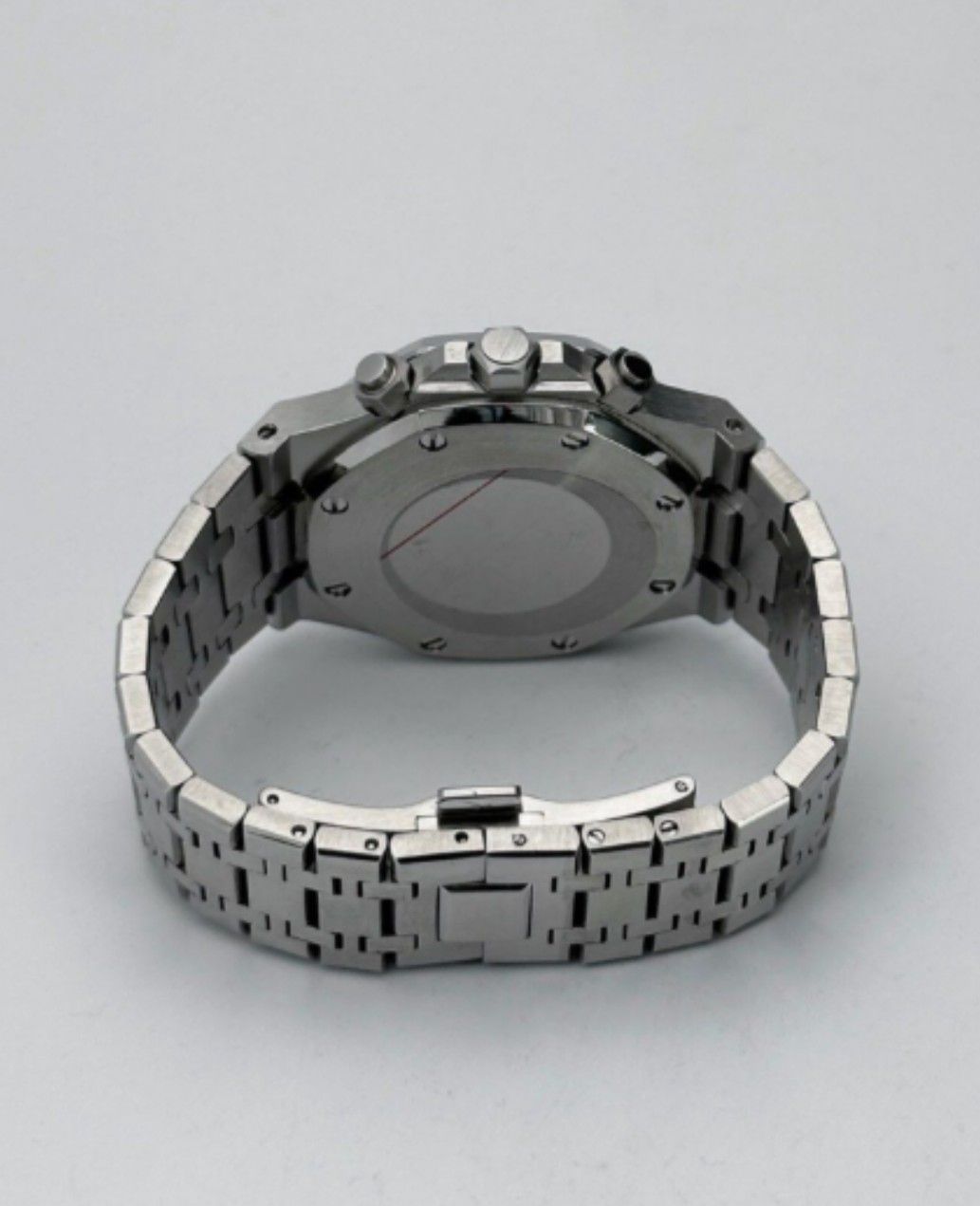 Diese hochwertige Automatik-Armbanduhr im klassischen Royal Oak-Design verbindet robuste Materialien mit einem zuverlässigen japanischen Quarzwerk . Das präzise Uhrwerk, das kratzfeste Saphirglas und das massive Edelstahlgehäuse machen diese Uhr zu einem idealen Begleiter für Alltag, Reisen und Busi