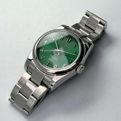 Armbanduhr Oyster Perpetual Grün Arabisches Zifferblatt Stahl Oyster Herrenuhr NH35