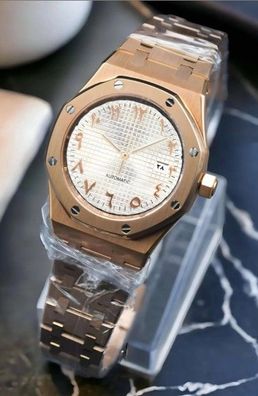 Armbanduhr Royal Oak Weiß Arabisch Zifferblatt Rosegold Automatik 41mm Herrenuhr NH35