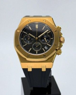 Armbanduhr Royal Oak Chronograph Schwarz Gold Kautschukband Herrenuhr 41mm