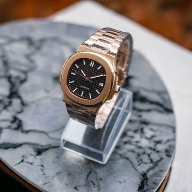 Armbanduhr Nautilus Rosegold Schwarzes Zifferblatt NH35 41mm Automatik Luxusuhr