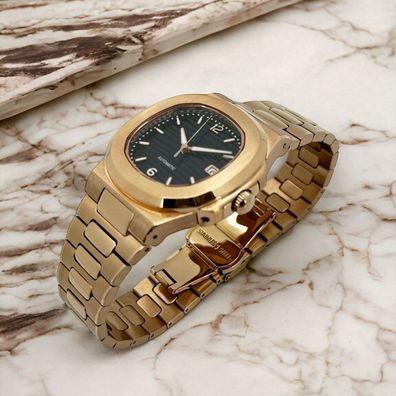 Diese hochwertige Automatik-Armbanduhr im klassischen Royal Oak-Design verbindet robuste Materialien mit einem zuverlässigen japanischen Quarzwerk . Das präzise Uhrwerk, das kratzfeste Saphirglas und das massive Edelstahlgehäuse machen diese Uhr zu einem idealen Begleiter für Alltag, Reisen und Busi