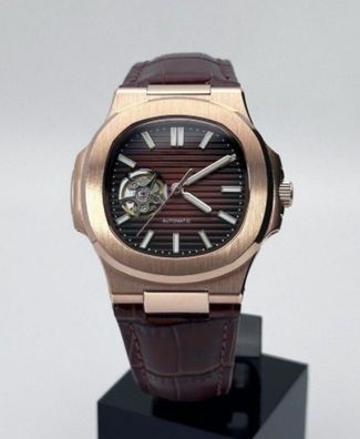 Armbanduhr Nautilus Braunes Zifferblatt Rosegold Lederarmband 41mm Automatik Luxusuhr