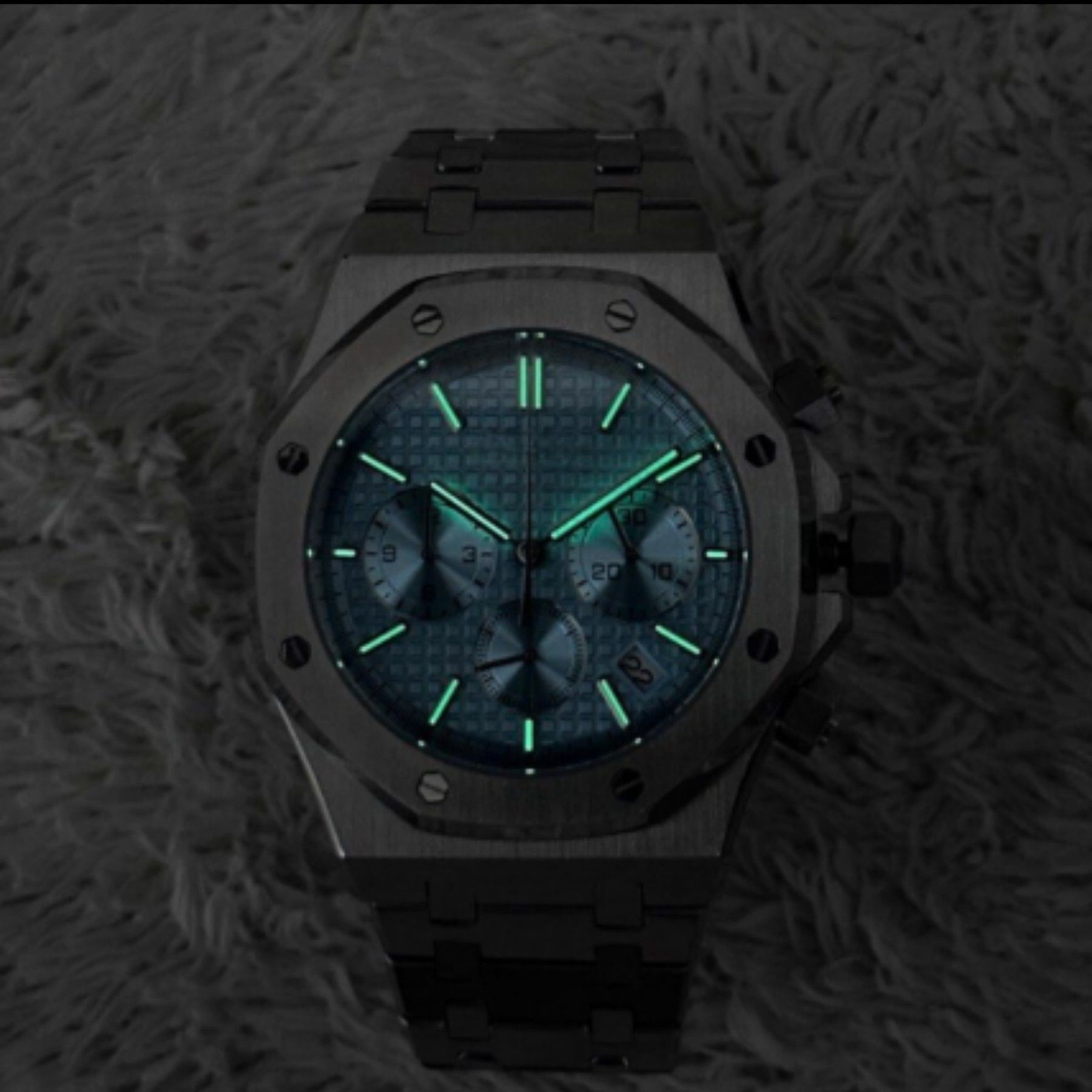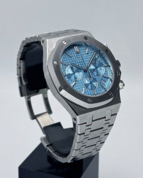Diese hochwertige Automatik-Armbanduhr im klassischen Royal Oak-Design verbindet robuste Materialien mit einem zuverlässigen japanischen Quarzwerk . Das präzise Uhrwerk, das kratzfeste Saphirglas und das massive Edelstahlgehäuse machen diese Uhr zu einem idealen Begleiter für Alltag, Reisen und Busi