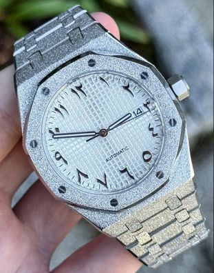 Armbanduhr Royal Oak Iced out Weiß Arabisch Stahl Automatikuhr NH35 41mm Herren