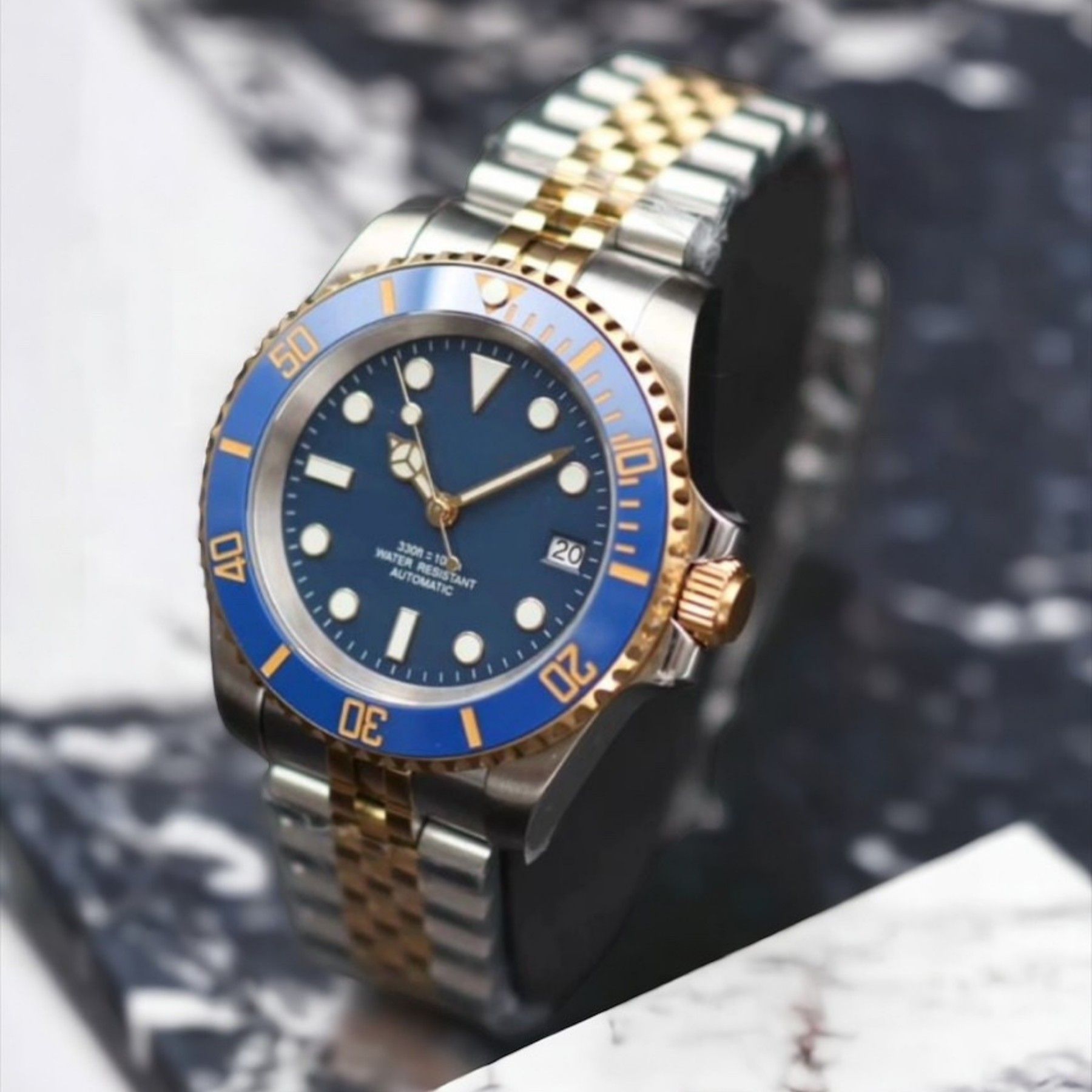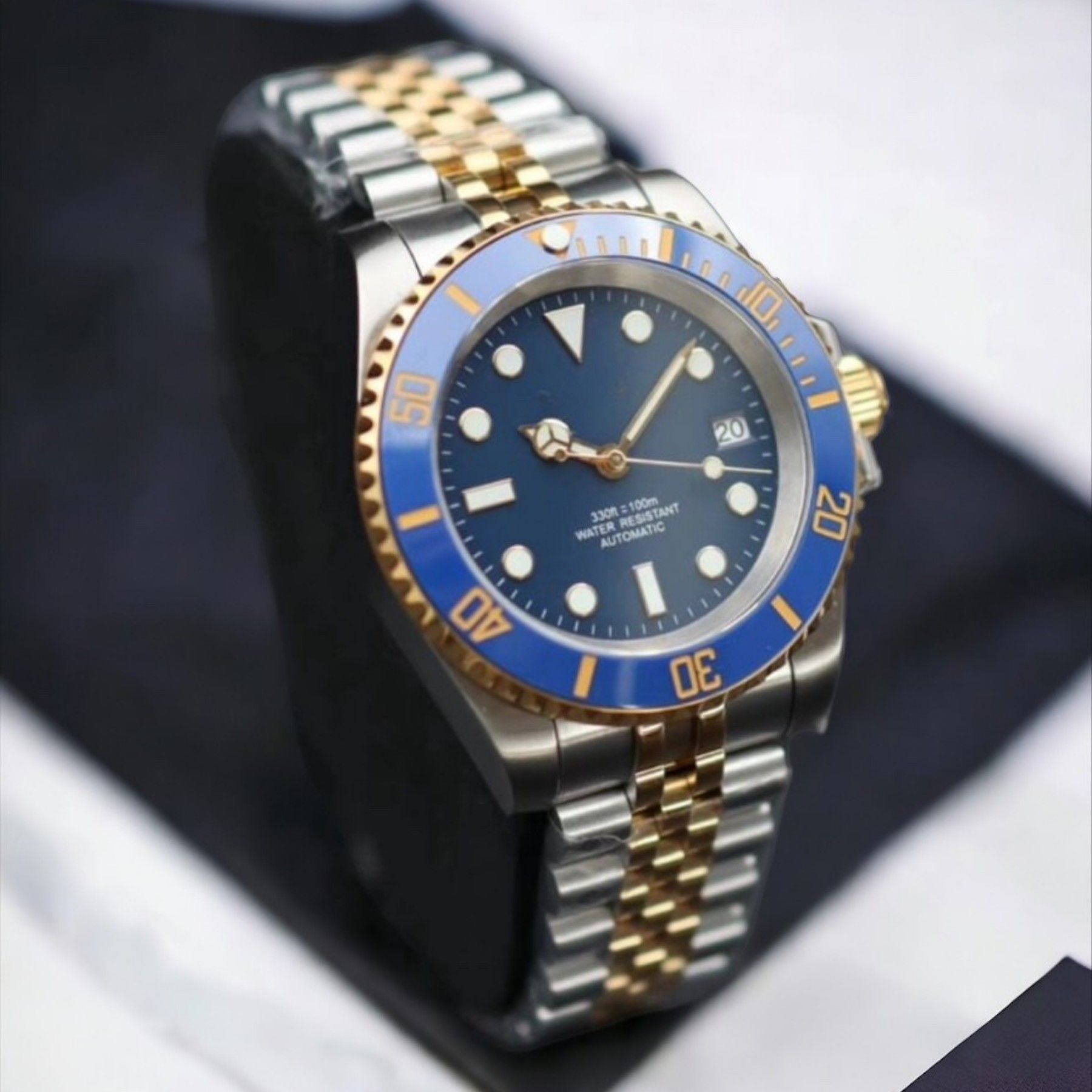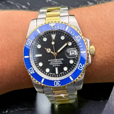 Armbanduhr Submariner Date Bluesy Schwarz Blau Stahl Gold Oyster Automatikuhr NH35