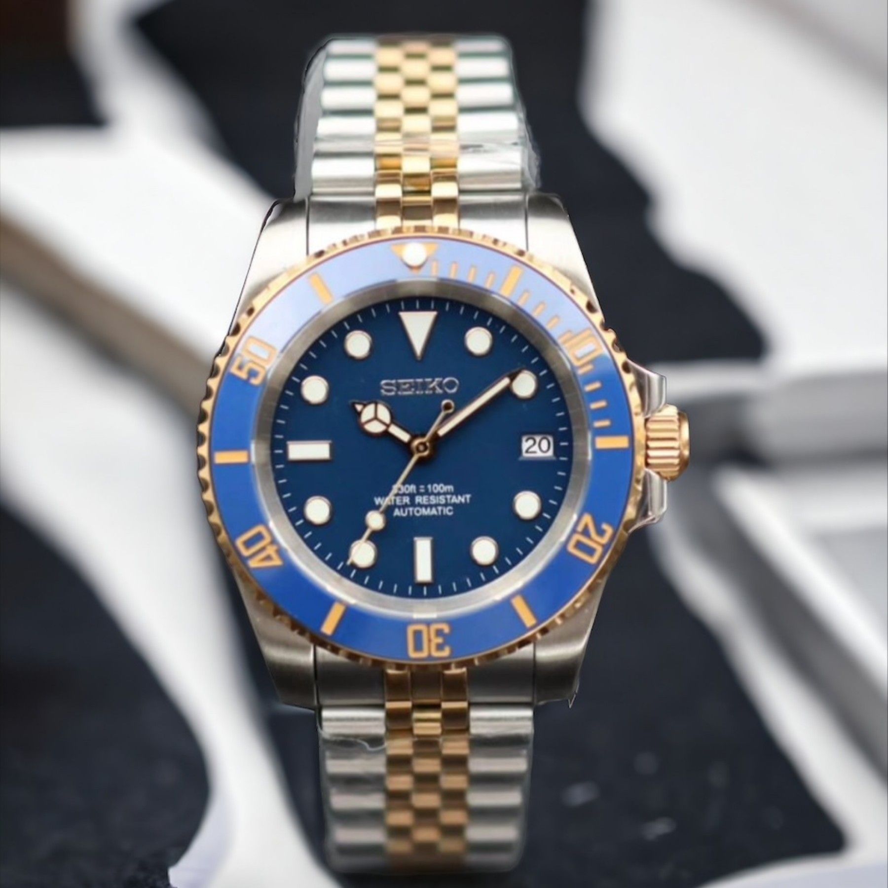 Armbanduhr Submariner Date Bluesy Blau Stahl Gold Oyster Automatikuhr NH35