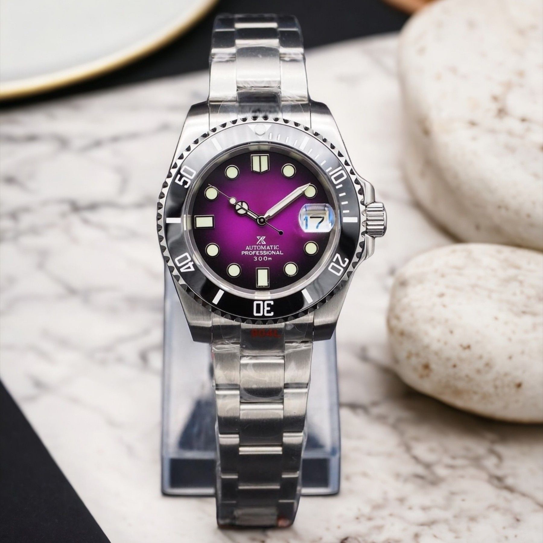 Armbanduhr Submariner Date Lila Schwarz Stahl Oyster Automatikuhr NH35 Herrenuhr