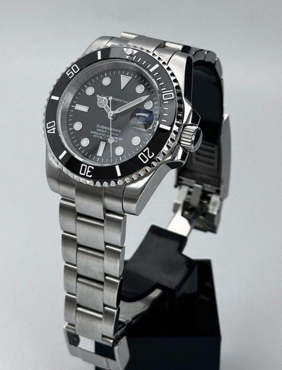 Armbanduhr Vintage Submariner Date Schwarz Blau Stahl Oyster Perpetual NH35 Automatik