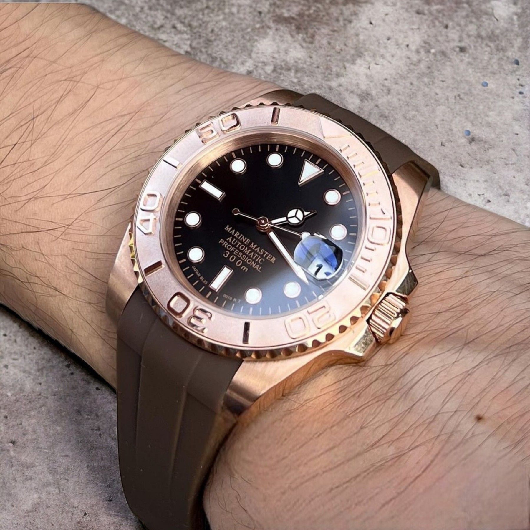 Armbanduhr Yacht-Master Schwarz Rosegold Oysterflex Braun NH35 Automatik Herrenuhr