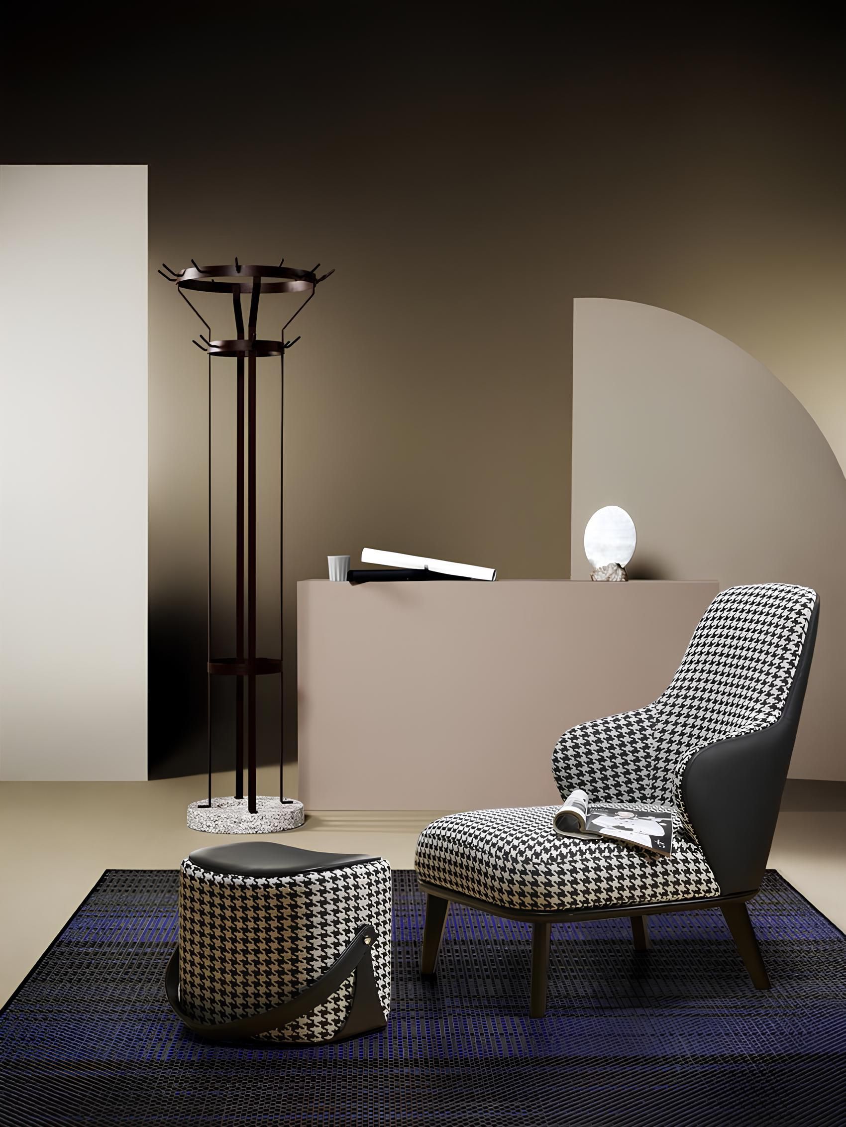Eleganter Dunkelbrauner Sessel Designer Stoffsessel Polstersessel