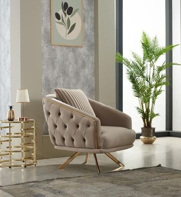 Stilvoller Beiger Wohnzimmersessel Polstersessel Designer Sessel