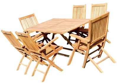 TEAK SET: artenset Gartengarnitur Klapptisch 140x80 + 6 Klappsessel mit Armlehne